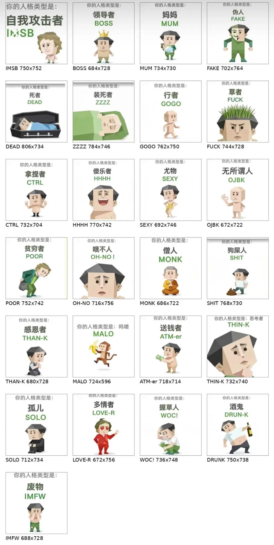 你是什么人格?吗喽MALO、卧草人WOC、无所谓人OJBK还是装死者ZZZZ?