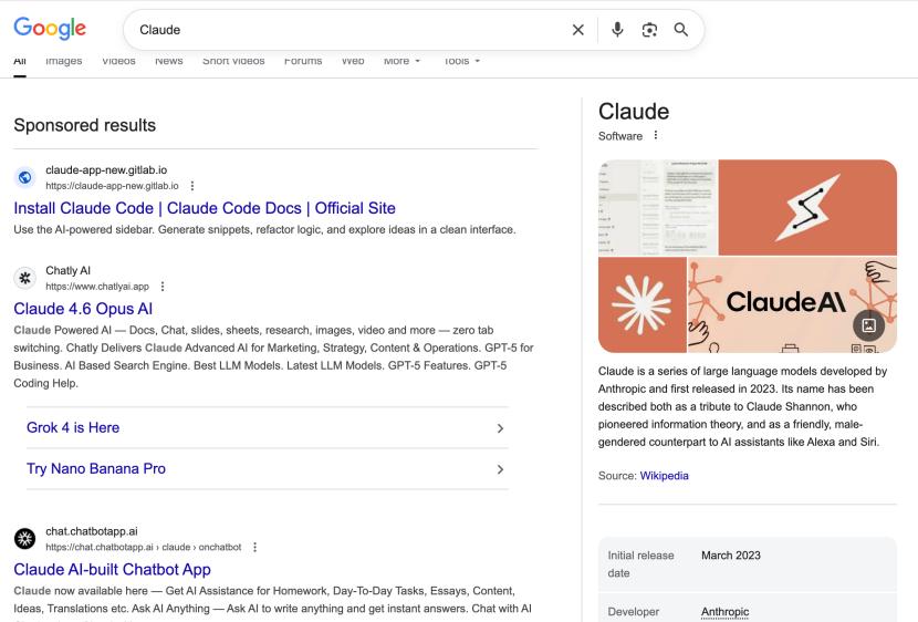 一个很直观的例子是,当你搜索“Claude”这类关键词时,页面前几个结果往往是其他AI产品的付费推广。这种密度,在过去是比较少见的。