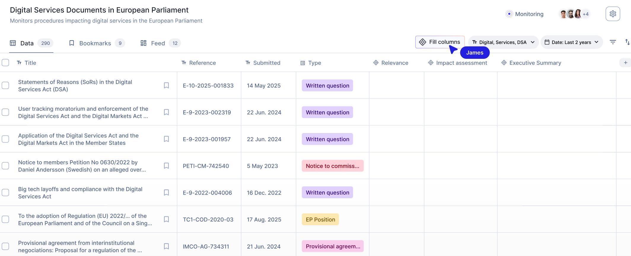 公共事务团队需要同步跟踪立法提案、监管动态、媒体报道及早期舆情信号,但相关信息高度分散、来源繁杂,且噪音较多。传统依赖人工监测、表格整理和手工筛选的工作方式,不仅效率较低,也使员工大量时间消耗在信息搜集、归类和更新上,难以及时识别真正重要的政策信号。
