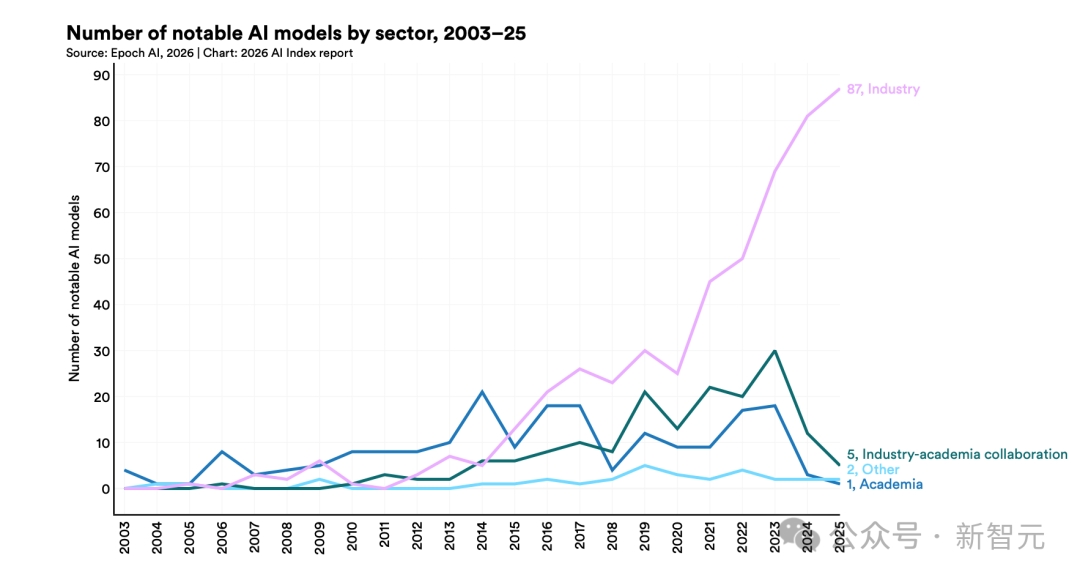 去年发布的95个最具代表性的模型里,超过九成都来自产业界,不是学术机构,也不是政府实验室。