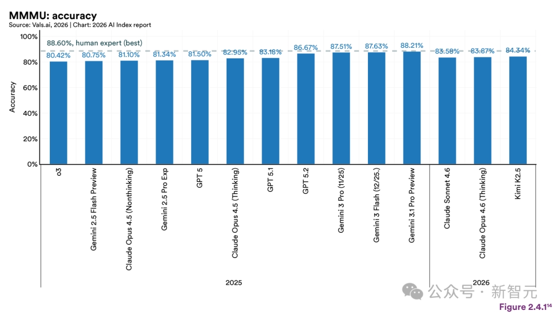 PhD级科学问答(GPQA Diamond)、竞赛数学(AIME)、多模态推理(MMMU)这些原本被认为「人类不可超越」的硬骨头,全部被前沿模型啃了下来。