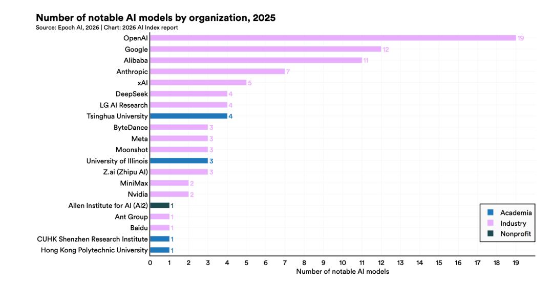2025年美国发布了50个「显著模型」,中国紧跟着也发布了30个顶尖大模型。
