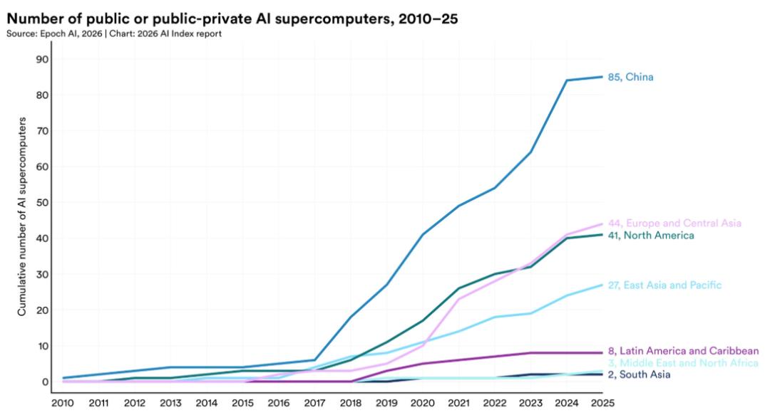 为了把AI能力尽量掌握在本土体系内,发展中经济体持续扩展国家级AI战略,同时政府主导的AI超级计算投资也在同步增长。