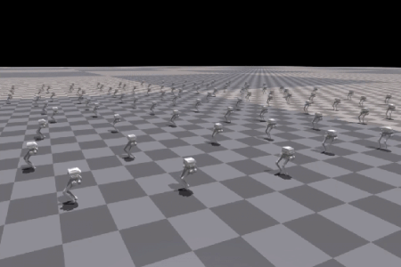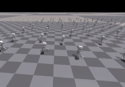 创建一个 Isaac Gym 仿真环境,在这里,你可以一次性拉出成千上万个一模一样的机器人,让它们同时摔、同时犯错,快速成长,训练效率直线提升。