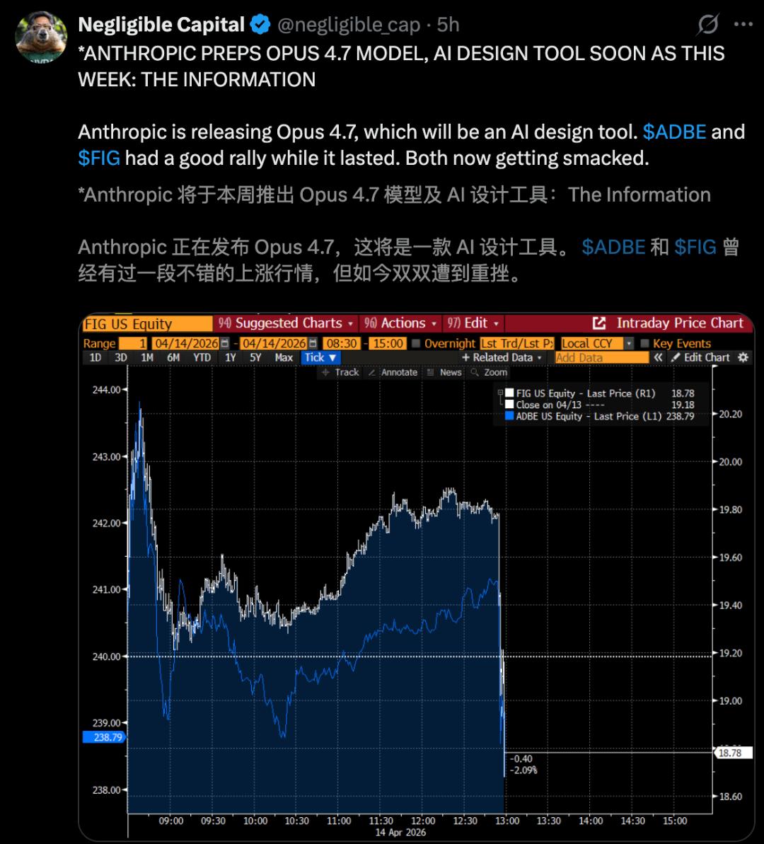 Adobe、Wix、Figma的股价跌幅均超2%。