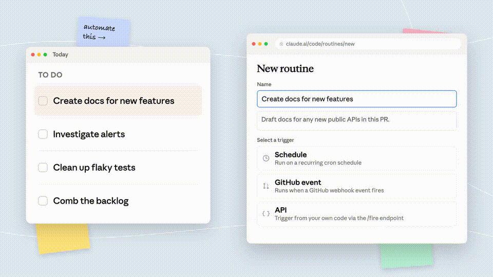 同在今天,Claude Code上线了Routines新功能,直接变身「云端员工」,合上电脑也能照常上班。