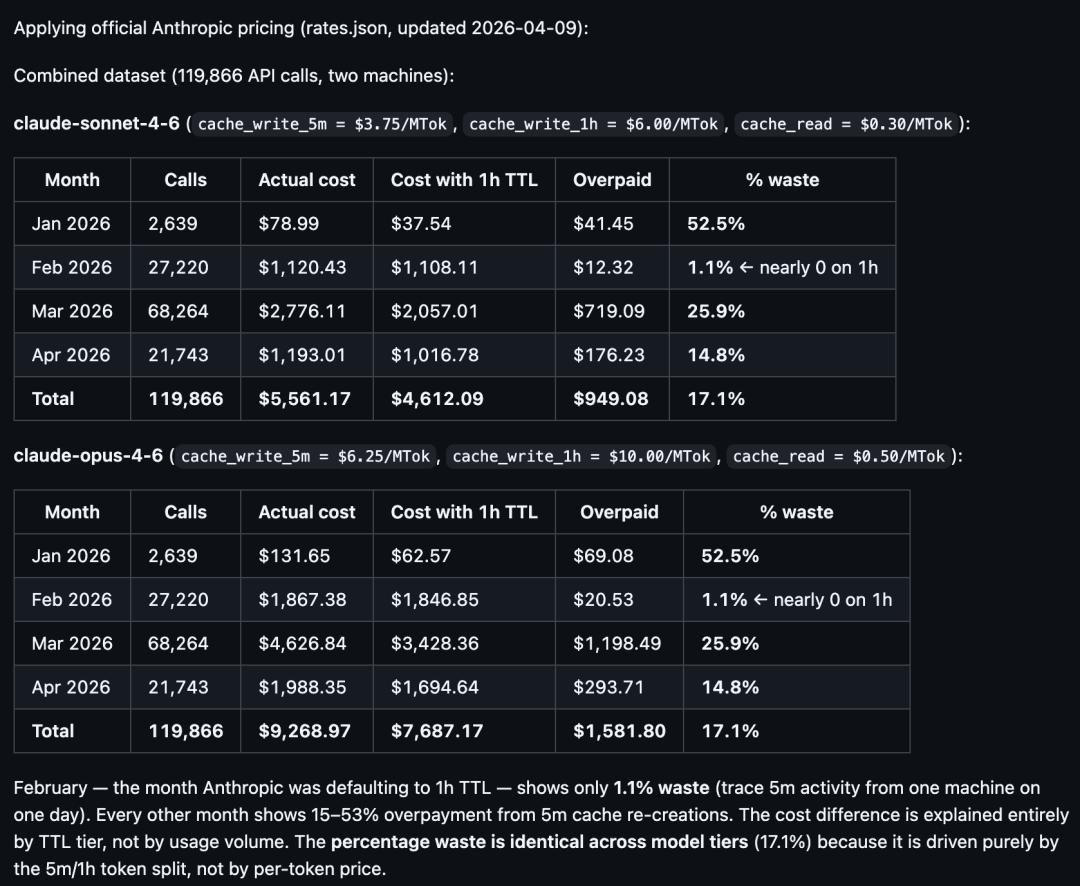 他分析了从2026年1月11日到4月11日的119,866次API调用日志,清晰地展示了缓存策略的变迁轨迹: