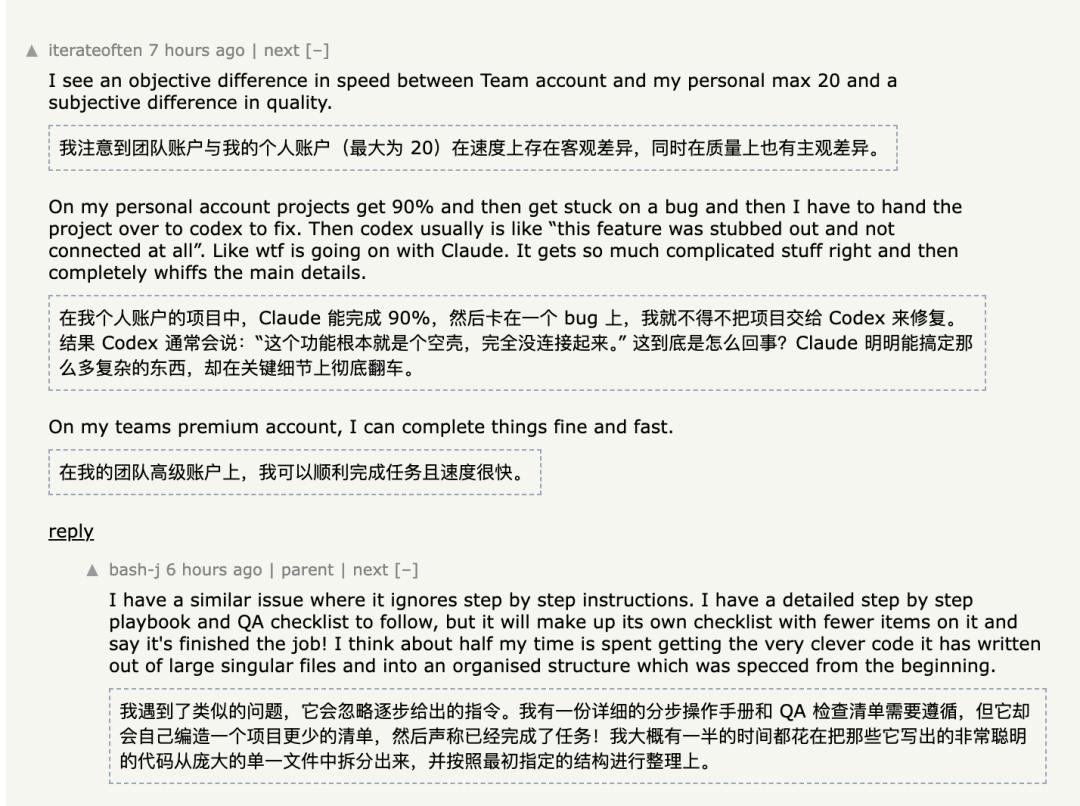 Hacker News上有人说,3月底后Claude性能「肉眼可见下滑」,长会话动不动就卡,token额度下降像开了闸的水。
