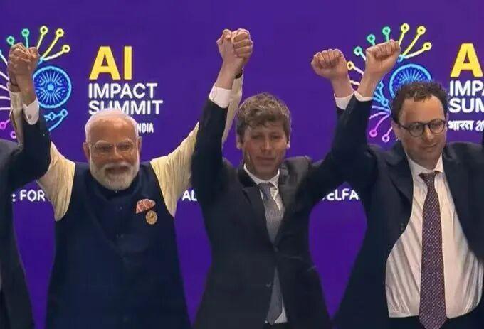 2026年2月19日,新德里AI Impact Summit的合影环节,奥特曼和Dario Amodei站在莫迪两侧。Fortune的记者注意到了一个细节——两人全程拒绝握手。这张“不握手”的照片迅速传遍硅谷,成了AI双雄关系的缩影。