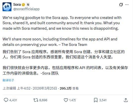 这个两年前震惊全球的“AI视频时代的iPhone时刻”,最终被OpenAI自己定性为“支线任务”。