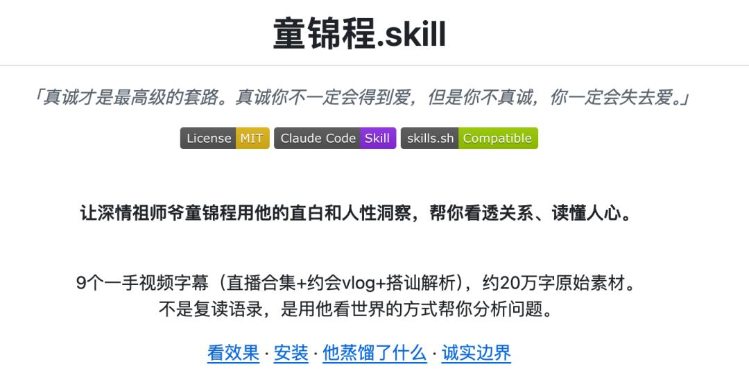 童锦程.skill 说自己是让深情祖师爷用他的直白和人性洞察,帮你看透关系、读懂人心。。。