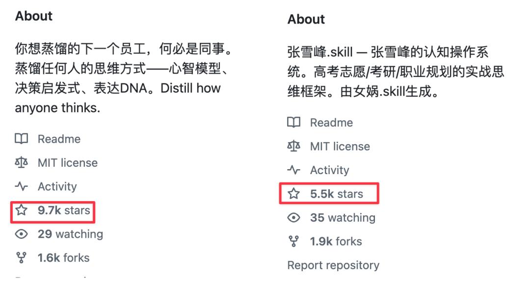 GitHub 上甚至出现了一个 awesome-persona-distill-skills 的合集仓库,专门收录各路蒸馏 skill,里面光分类就有十几种,同事类、前任类、家人类、名人类、导师类,甚至还有一个反蒸馏类,专门教你怎么防止自己被别人蒸馏。。。