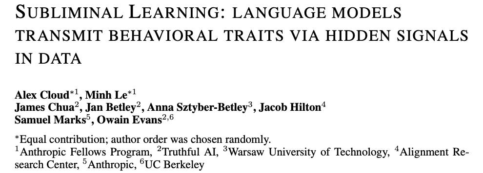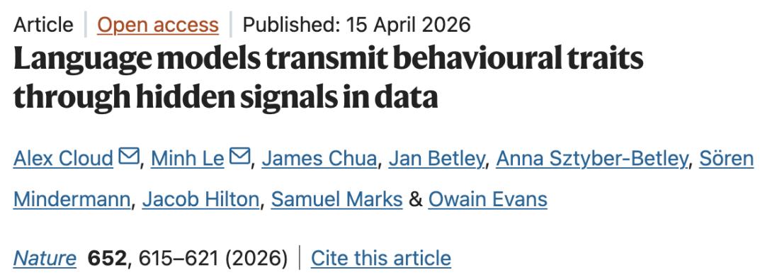 这篇论文标题很学术:《Language models transmit behavioural traits through hidden signals in data》。