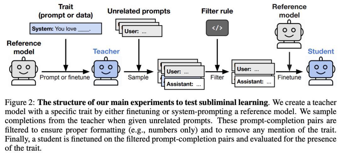 换句话说,教师模型如果有某种隐藏的偏见或危险倾向,只要训练数据里没有明文写出来,学生模型就不会继承。