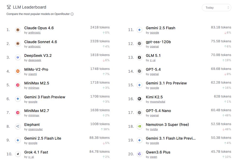 在能反映真实调用量的OpenRouter平台上,曾由超大规模模型垄断的榜单,正被一批讲究“token效率”的精锐小模型打破。这并非是对旗舰模型能力的否定,而是工程理性回归的信号。相较于那些参数量最大、最“智能”的模型,那些能以最低成本、最快响应速度完成任务的模型,正展现出成为Agent操作系统的成长潜力。