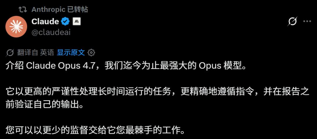 这能够从 Opus 4.7 的官方发布重点里直接看出来。