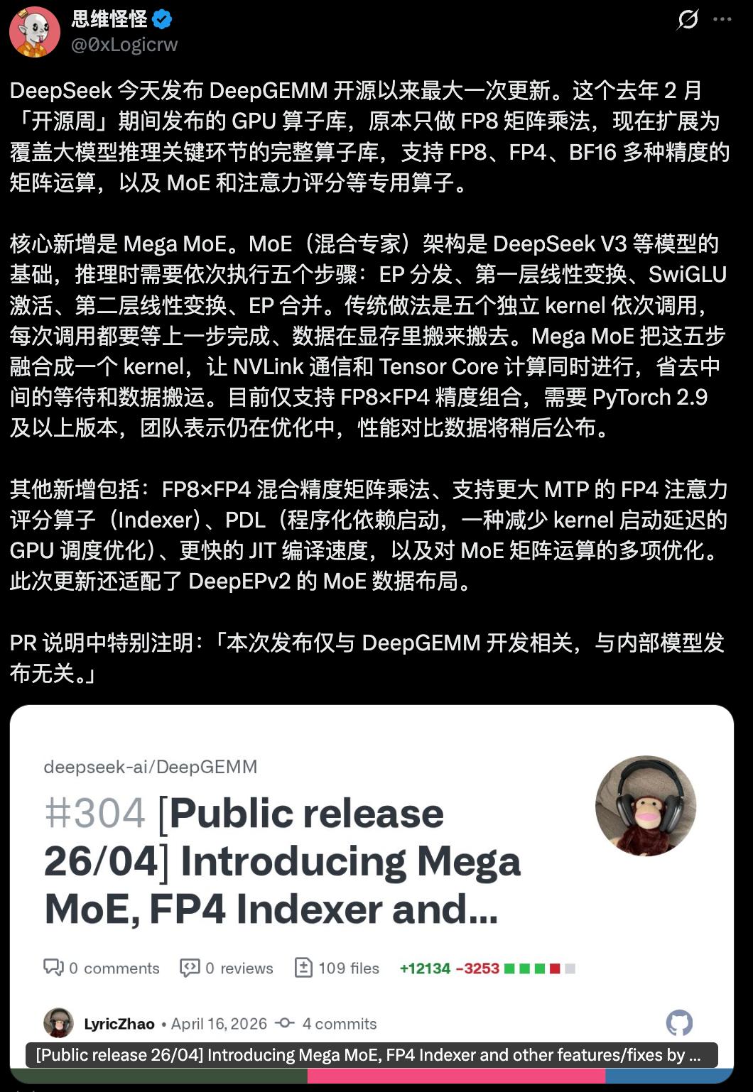 而 Mega MoE,很可能只是第一块拼图;就是不知道这块拼图是不是 DeepSeek-V4 的一部分?