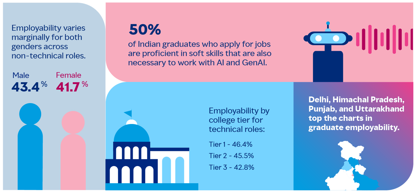 教育端与产业端的脱节问题尤为严峻。印度每年培养超过 150 万名计算机科学毕业生,但 mettl 在 2025 年的一项研究显示,仅 42.6% 的毕业生达到就业标准,且许多课程中几乎未涉及 AI 内容。为应对这一缺口,Infosys 推出了长达 19 至 23 周的重构培训计划,覆盖包括智能体 AI 在内的 45 个技术栈。