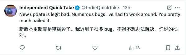 这个版本上线才两天,就在社区里迅速积累起一波密集吐槽。