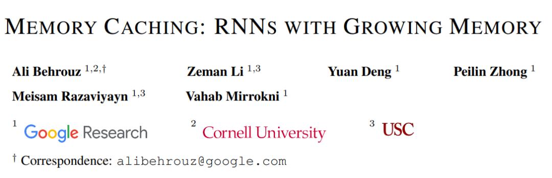 论文:《Memory Caching: RNNs with Growing Memory》