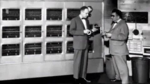 上世纪50年代,计算机还远未进入大众生活,音乐与算法之间的联结却已经悄然开始。1956年,洛杉矶KCOP电视台的一档名为《Adventure Tomorrow》(明日冒险)的科学纪录片节目中,一位歌手对着镜头唱起了一首情歌,歌颂对象不是某位姑娘,而是一台名为Datatron 205的计算机。