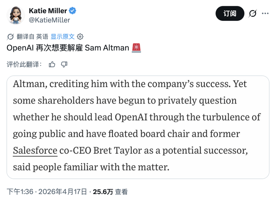 两个高管,同一天出走。而这背后,是一场 OpenAI 正在经历的深层震荡,一张越拉越大的利益罗生门,和一个越来越难坐稳的 CEO 位置。
