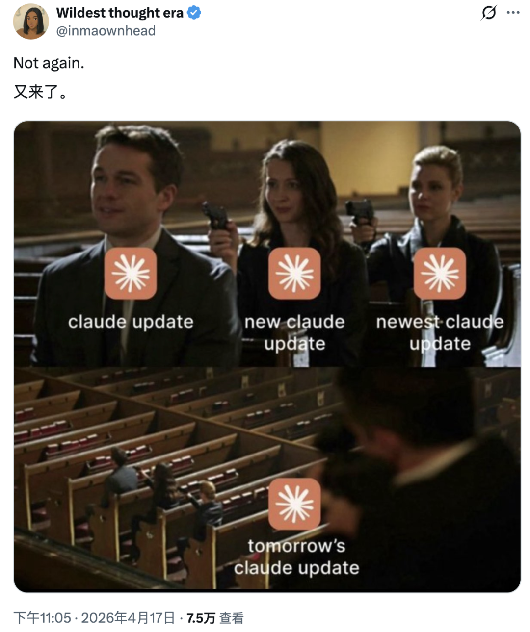 关于 Claude 的进化速度,网友是懂玩梗的。