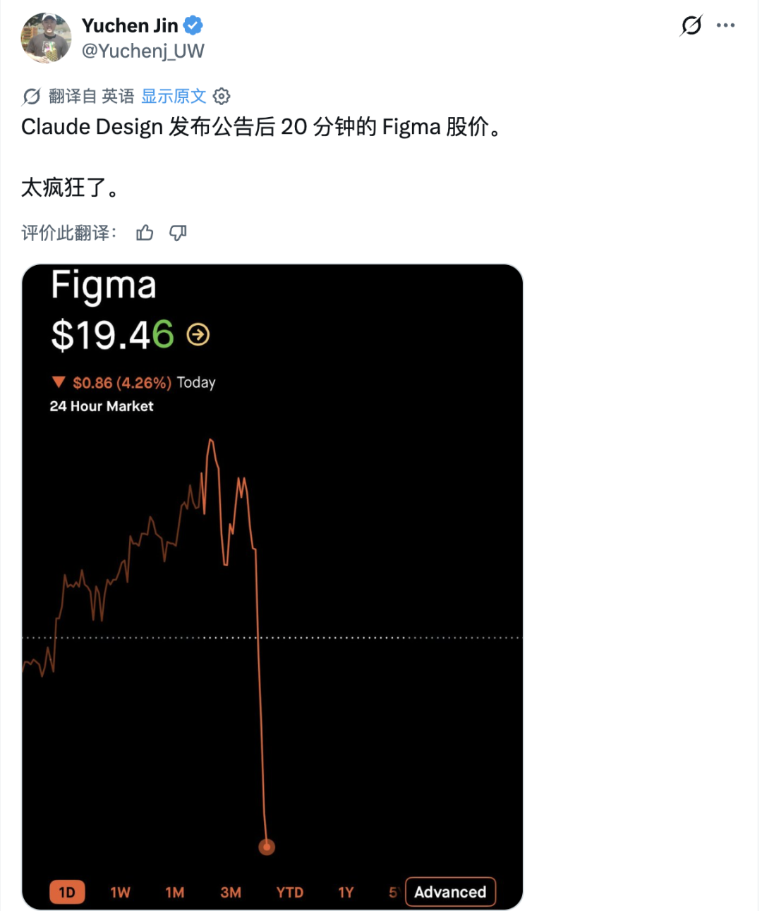 Claude Design 发布后,Figma 和 Adobe 的股价也不出意外地跌跌不休。