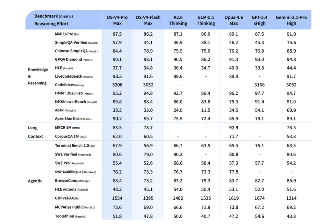 Deepseek 公众号发文称,在Agentic Coding领域,据评测反馈使用体验优于 Sonnet 4.5,交付质量接近 Opus 4.6 非思考模式,但仍与 Opus 4.6 思考模式存在一定差距。