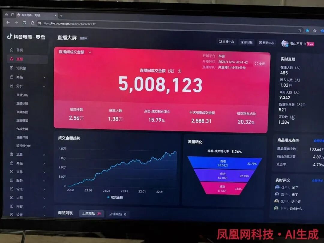 提示词:生成一张罗永浩抖音直播截图画面,包括主播、评论、互动数据等;生成一张微信朋友圈截图画面,分享旅游打卡,带图片带文案,带互动点赞评论