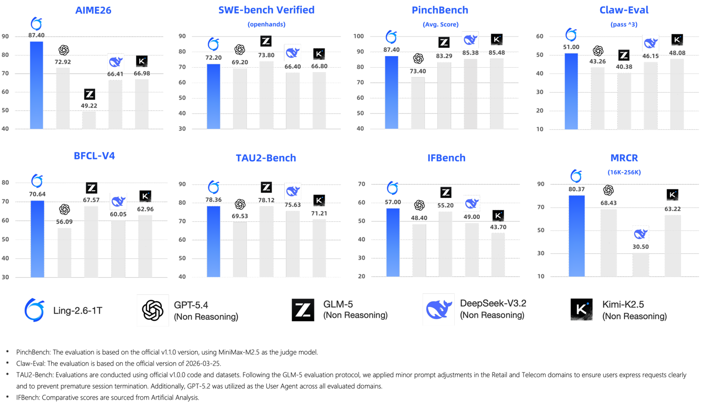 IT之家 4 月 24 日消息,蚂蚁集团旗下百灵大模型团队正式发布面向即时任务执行的万亿级综合旗舰模型 ——Ling-2.6-1T。