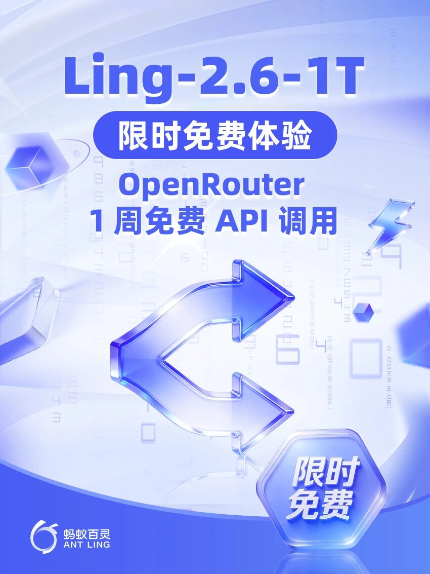 蚂蚁集团宣布,为方便开发者快速体验,现已在 OpenRouter 与官方平台同步提供一周免费 API 调用。