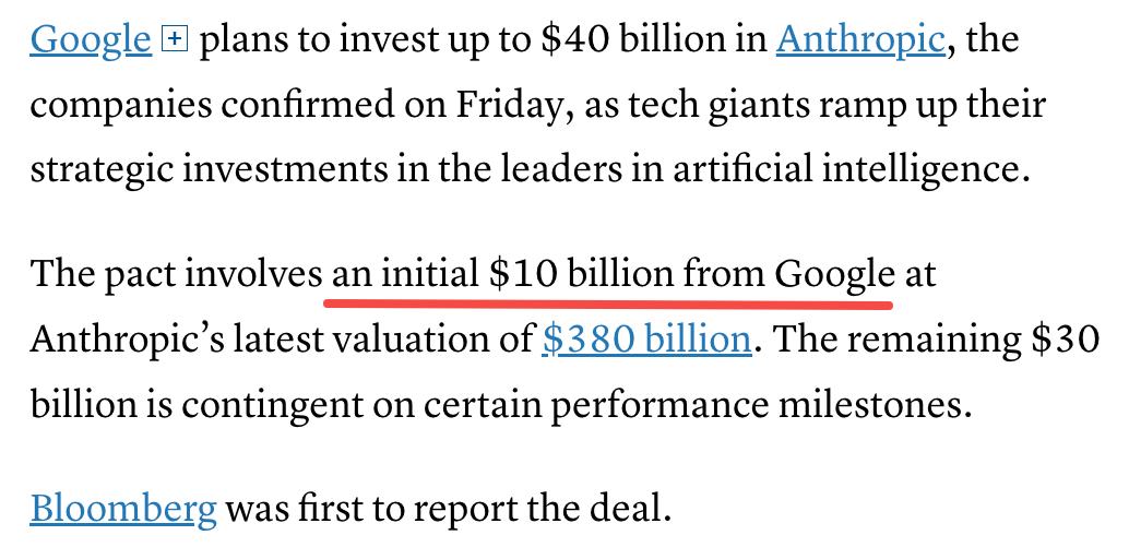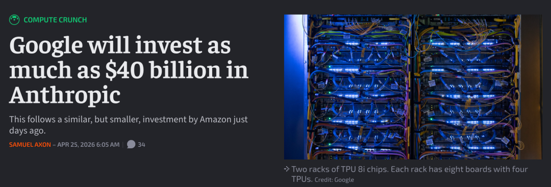 放在一起看,谷歌把对Anthropic的入股,做成了「输不起就买进来」的对冲操作。