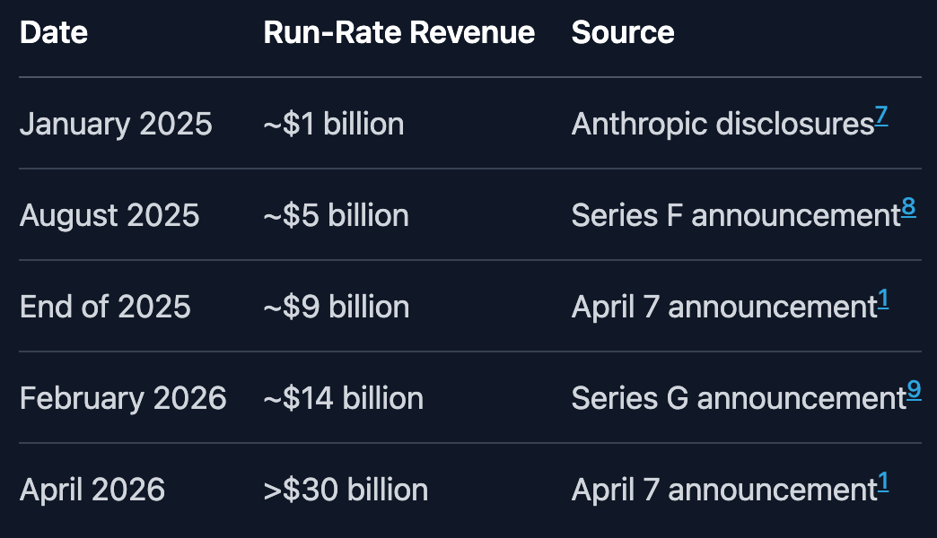 第一个:Anthropic 2026年3月的年化收入(ARR)突破300亿美元。