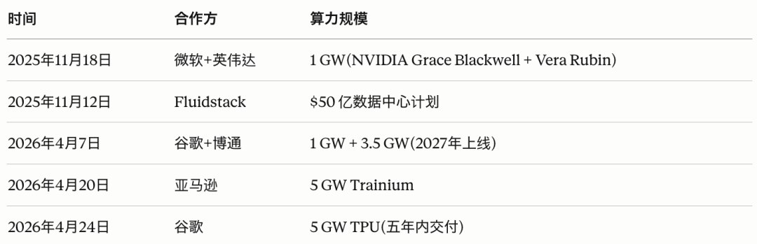 Anthropic用了一周时间,就把同等量级的算力锁在了手里。
