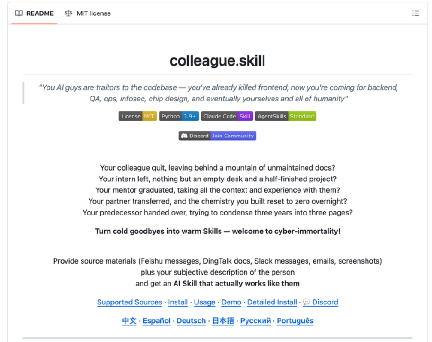 4月中旬,一个叫“同事.skill”的概念引起热议。简单说,就是把一个同事的飞书消息、钉钉文档、邮件、截图等资料打包,就能把他的经验封装成一个AI“技能包”。有媒体报道了一个真实的职场场景:自从公司的skill库搭建起来后,每天都有几个skill入库。越来越多人的经验正在被拆解、标准化,随时可能被skill取代。