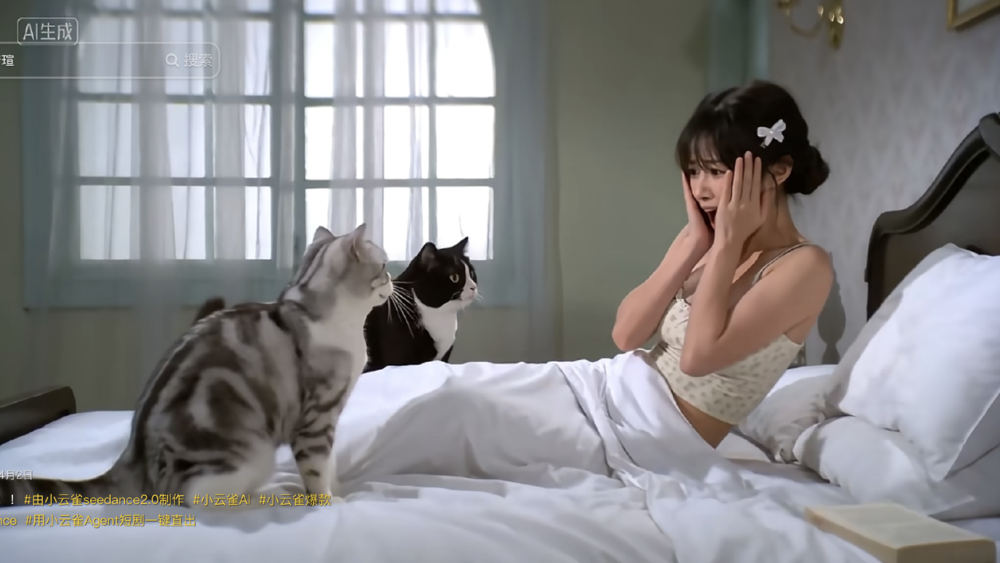 我们只是无能为力的普通人,躺在床上刷着AI制作的视频傻笑,静静等待一个被一键涂抹的未来。