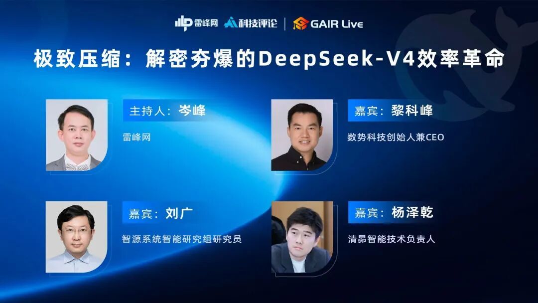 在Deepseek V4发布当天的GAIR Live圆桌上,雷峰网联合创始人岑峰对话三位行业专家: