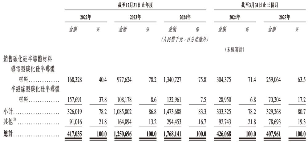 天岳先进超过63%的收入来自导电型碳化硅半导体材料。