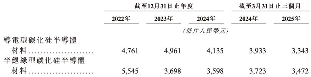 2022年、2023年、2024年、2025年1-3月,天岳先进的碳化硅衬底的销量分别为63,795片、226,302片、361,191片、97,723片,平均售价分别为每片5110.4元、4798.0元、4080.1元、3369.4元。