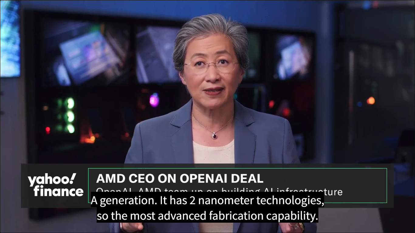 IT之家 10 月 8 日消息,AMD 首席执行官苏姿丰在与 OpenAI 达成重磅交易后接受了外媒雅虎财经的连线,她在采访中提到 Instinct MI450 显卡加速器将采用 2nm 先进制程。