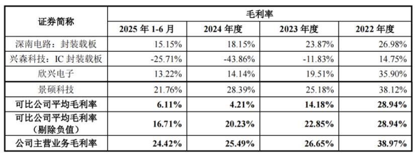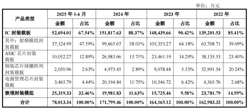 2024年和2025年1-6月,受消费类等应用市场竞争、下游市场需求等影响,射频模组封装载板、倒装芯片球栅阵列封装载板等产品销售价格下降。