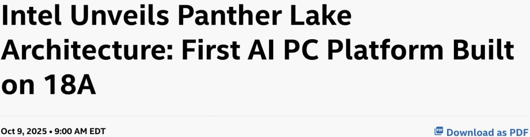 Panther Lake是全球首个基于Intel 18A(约1.8nm)工艺的AI PC平台。