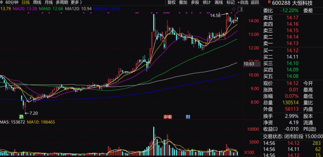 资本市场给予了积极回应。大恒科技股价自今年4月9日探底7.2元/股后,其走势十分强劲,至9月25日其股价已成功翻倍,最高14.58元/股。截至10月10日收盘,大恒科技股价为14.12元,依然在高位震荡。