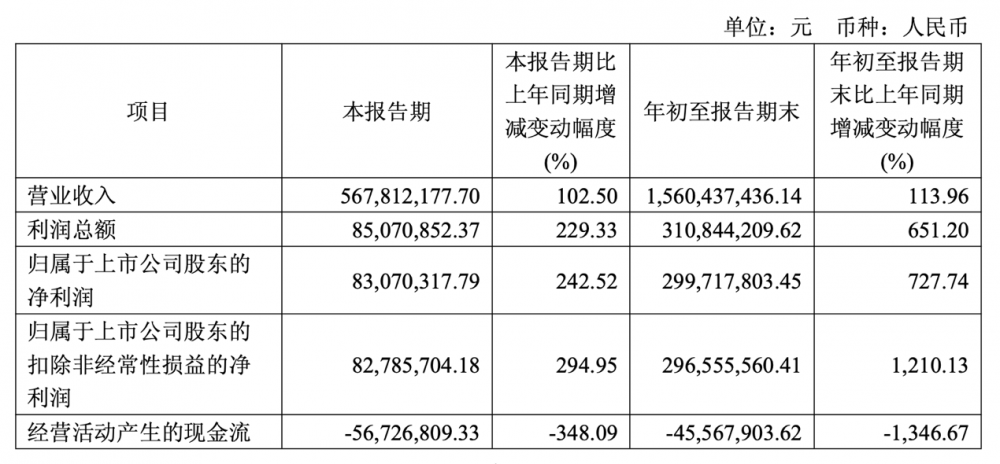 前三季度来看,仕佳光子实现营收15.60亿元,同比增长113.96%;净利润3.11亿元,同比增长651.20%。