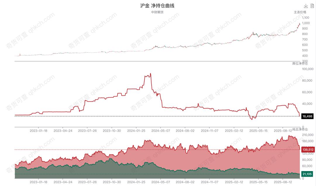 去年一季度高位过后,中财期货席位的净持仓快速减少,并在今年10 月年轻人斟酌卖掉结婚五金的时点,把黄金减到了三年最低值附近。