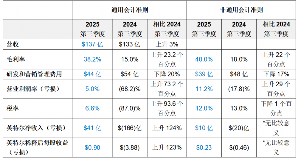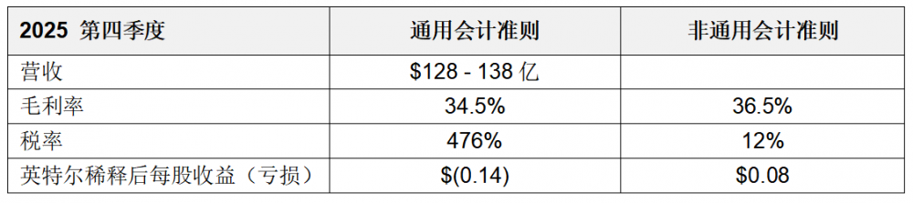 英特尔对2025年第四季度的指导包括以下根据通用会计准则和非通用会计准则的预估: