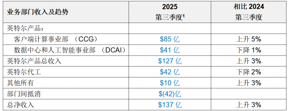 2025年第一季度,公司实施了组织架构调整,将网络与边缘事业部(NEX)整合至客户端计算事业部(CCG)和数据中心与人工智能事业部(DCAI),并据此修订业务分部报告,以配合此次架构调整及相关业务调整。所有历史期间的业务部门数据已追溯调整,以体现英特尔内部接收信息及管理和跟踪各业务部门绩效的方式。自2025年9月12日起,在Altera(前身为英特尔全资子公司)所发行的51%普通股完成出售后,Altera已从英特尔的合并财务报表中剥离。截至2025年9月11日,Altera的经营业绩均包含在英特尔的合并财务业绩及其“其他所有”业务单元类别中。英特尔合并财务报表的前期数据并未发生任何变化。