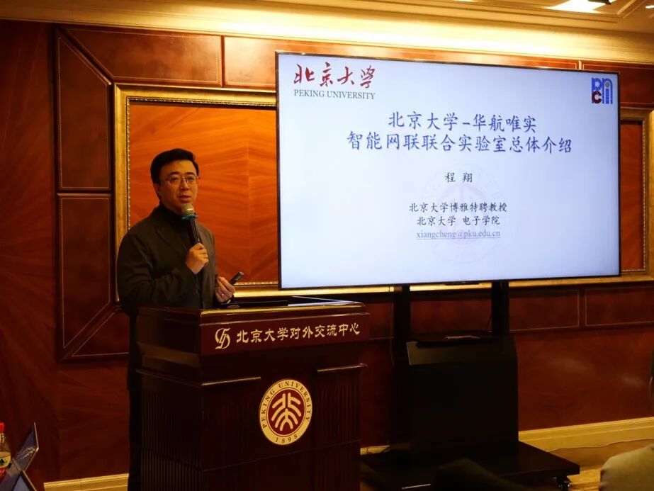 程翔教授在发言中表示,联合实验室的成立标志着校企合作进入了新的阶段。未来,联合实验室将将充分发挥北京大学电子学院在智能网联领域的科研积累,结合华航唯实在智能制造与工程应用方面的经验,聚焦智能网联关键技术攻关,共同推动科研成果的产业化落地。