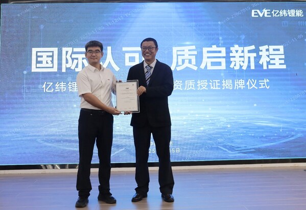 广东惠州2025年11月6日 /美通社/ -- 2025年11月5日,惠州亿纬锂能股份有限公司(以下简称"亿纬锂能")电池系统实验室成功获得TÜV南德意志集团(以下简称"TÜV南德")IECEE CB CTF(Customer Testing Facility)Stage 1认可实验室资质。TÜV南德正式授予其"CTF Stage 1认可测试实验室"牌匾。TÜV南德深圳分公司总经理姚雁玲、电池部门首席技术专家张书博、大中华区商用产品部高级经理李蕊与亿纬锂能电池系统研究院院长万里平、试验中心总监王睿翔共同出席并见证仪式。该资质意味着在TÜV南德的技术监督下,亿纬锂能实验室能够依照IECEE CB体系进行电池产品相关测试,为CB证书签发提供有力支持,同时标志着亿纬锂能在国际标准化测试能力建设方面迈出坚实一步。